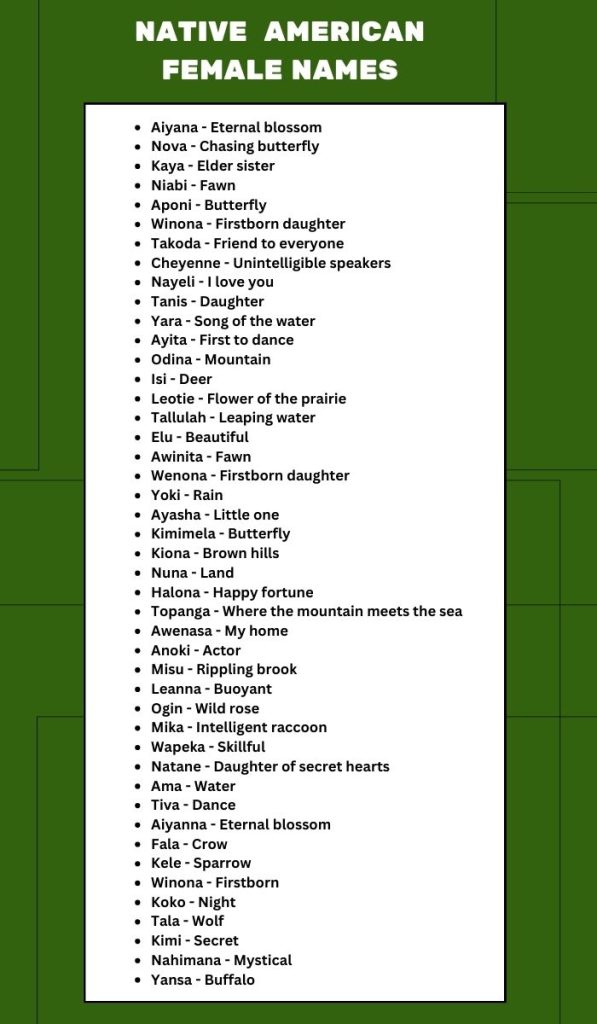• Winona: Meaning “firstborn daughter” in the Dakota language, Winona signifies the importance and honor of being the eldest daughter.