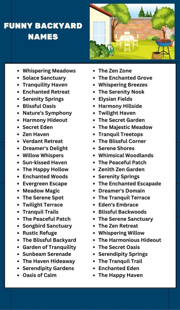 Yes, the backyard is as important as our homes, as we can do a lot of things in the backyard, from gardening to getting fresh air and soaking up some sun. This article will help you to create some of the funniest backyard names. So, get ready to add a little bit of laughter and personality to your space!