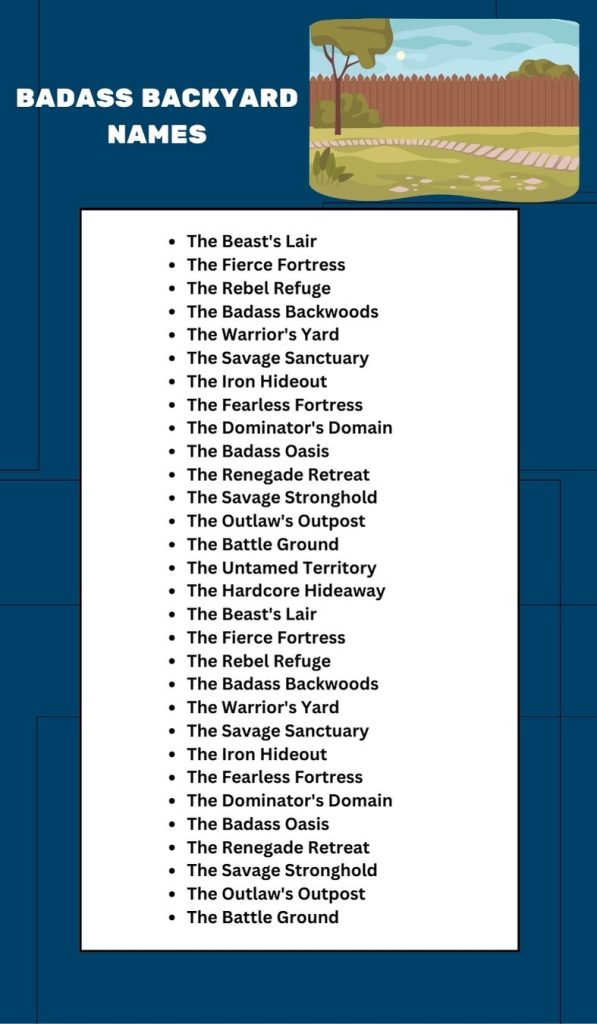 When it comes to naming backyards, some names exude an aura of rugged individuality and unapologetic coolness. These badass backyard names embody the spirit of adventure, daring, and rebellion, transforming ordinary outdoor spaces into epic domains of power and prowess.