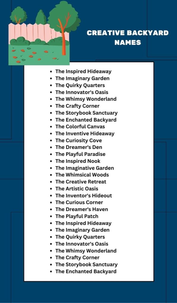 Backyards present an opportunity to infuse creativity and innovation. These creative backyard names serve as a testament to the boundless imagination and ingenuity of their owners.
