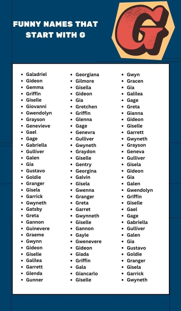 Some names that start with G are naturally funny, but not all the names that start with G are funny. You must have heard names like George and Grace, but those two don’t really sound funny. Wouldn’t you laugh when you heard Goober or Gidget?