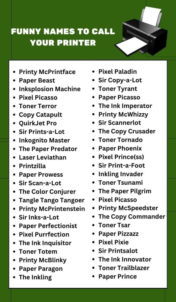 Regarding office banality, funny printer names inject a burst of humor, transforming tasks into moments of amusement. Whether it’s clever wordplay, unexpected connections, or playful personification, these names bring a touch of cheerfulness to the workplace.